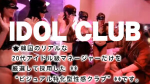 | IDOL CLUB(アイドル クラブ) 日本語HP | 260,000₩/60分 (約27,000円)~ | 店名どおり、若い女の子が沢山在籍しています。 クラブフロアの廊下にマット(チューブ)を敷き、みんなに見学されながらプレイを楽める有料オプションがあります(30,000₩/約3,100円) |