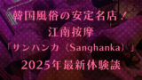 - アクセス: 江南駅・新沙駅周辺で、ホテル街と直結。深夜営業もあるので利用しやすい。