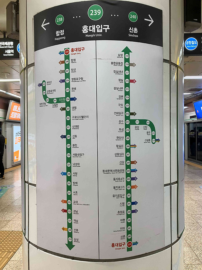 韓国にはバスや電車の時刻表は無いのですが、地下鉄は山手線みたいに3~5分間隔で来ますし、時間を気にせず利用する事ができます。