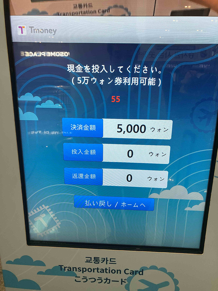 韓国のほとんどの店ではカードが使えるので問題ないですが、交通系ICカードのチャージは現金のみで、屋台などではカードに対応していない所もあります。