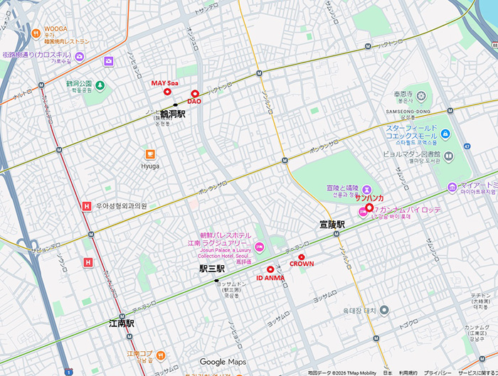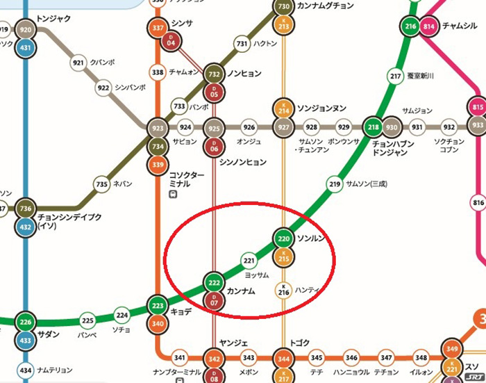 明洞・南大門・東大門などの観光エリアには、たくさんのホテルがありますが、江南までタクシーを使っても30分程度かかるし、移動が面倒くさいです。